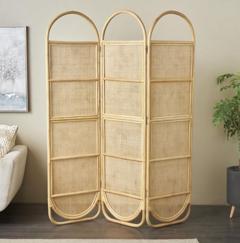 A functional screen made with a traditional open-weave technique. Adds texture and defines spaces without closing them off. Light filters beautifully through the natural rattan strands. Offers a flexible solution for studio apartments or open-plan areas. Lightweight and easy to reposition. 112,000 JPY.